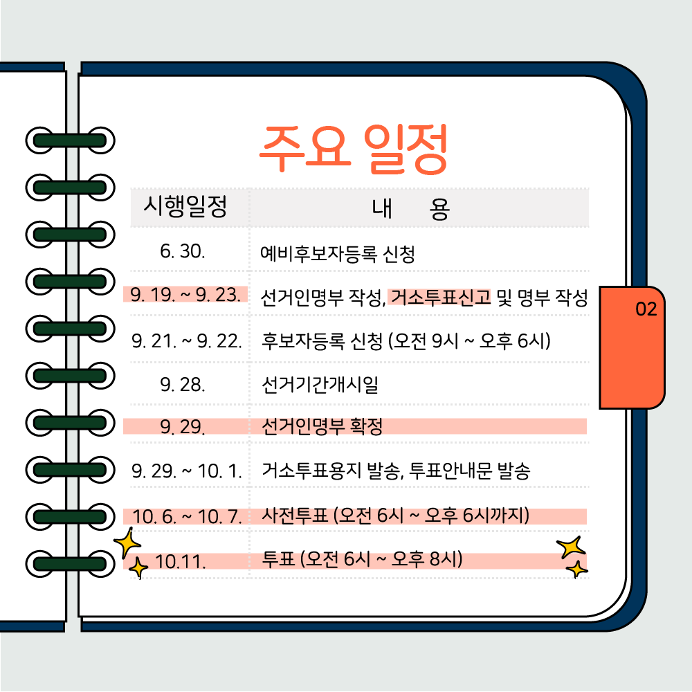 - 후보자등록 신청: 9. 21.(목) ~ 9. 22.(금)